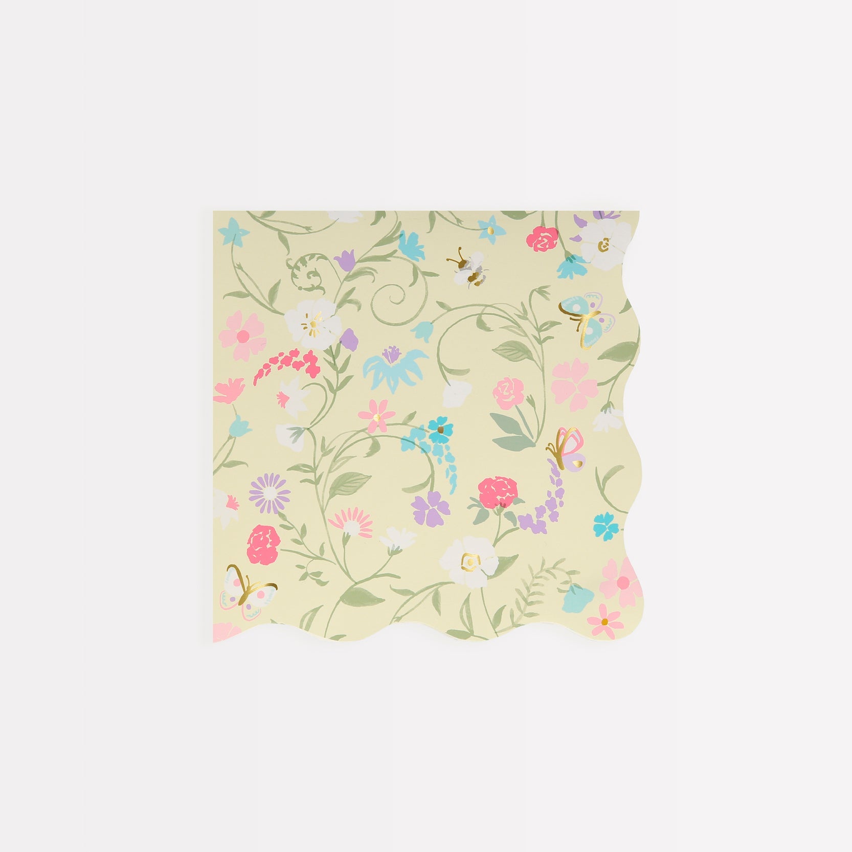 These beautifully illustrated napkins will add a stylish touch to your party table. Each pack has yellow, blue, pink and mint colours, with a scalloped border, for a charming effect.