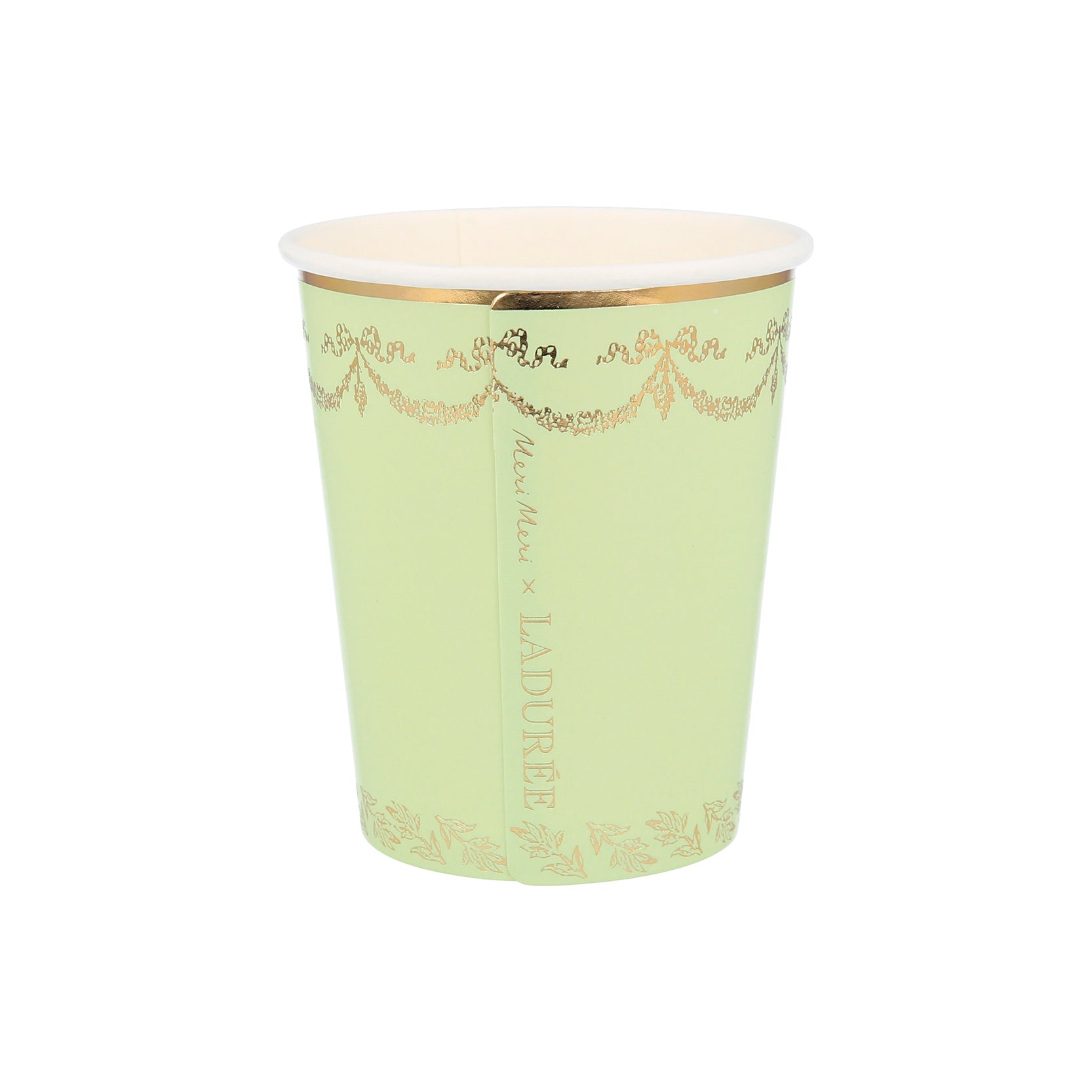 A delightful collaboration with Laduree, the restaurant, tea room and macaron specialist, to create these beautiful cups. The exquisite colours, gold foil design and borders, are so stylish.